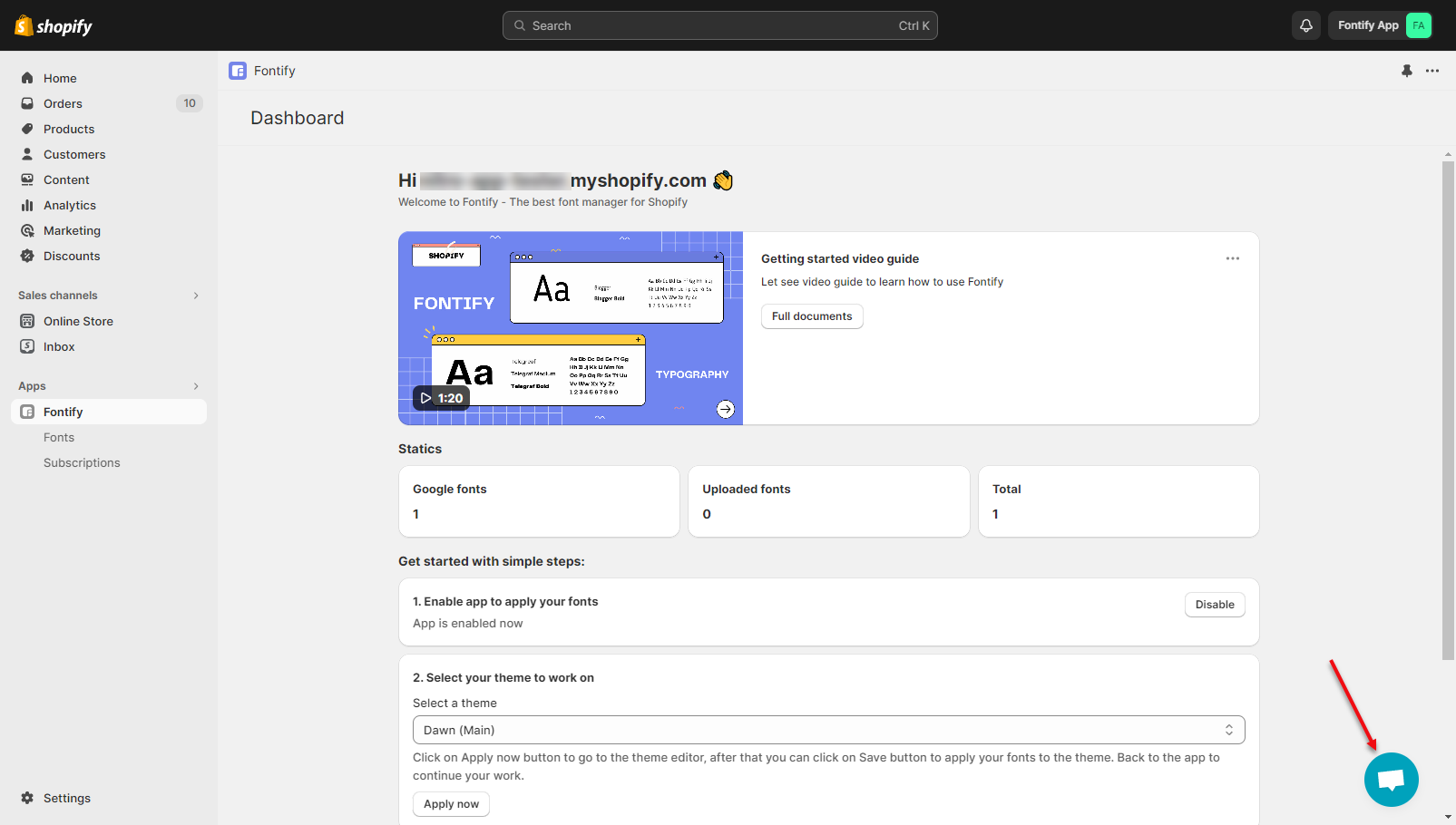 <figure><img src="https://1020453834-files.gitbook.io/~/files/v0/b/gitbook-x-prod.appspot.com/o/spaces%2F-LhdJXbk3sVdej6liHwp%2Fuploads%2FirmF061iHn62mJtwnZ4a%2Fimage.png?alt=media&#x26;token=0f58d922-8a63-48b5-bee7-8c6bf77632b5" alt=""><figcaption><p>Click on the chatbox to live chat with Fontify support team</p></figcaption></figure>